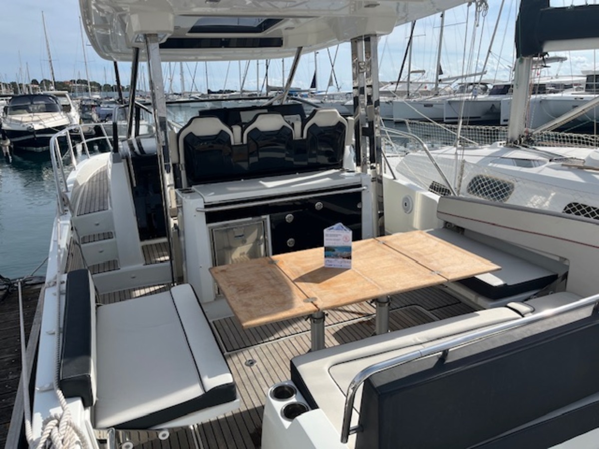 Équipements haut de gamme : guindeau électrique, électronique complète, tauds, sellerie soignée.