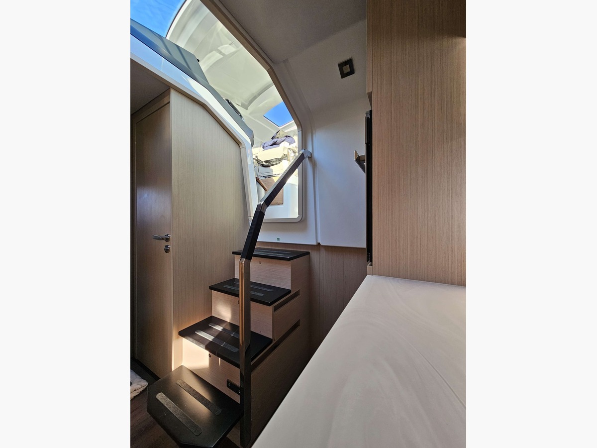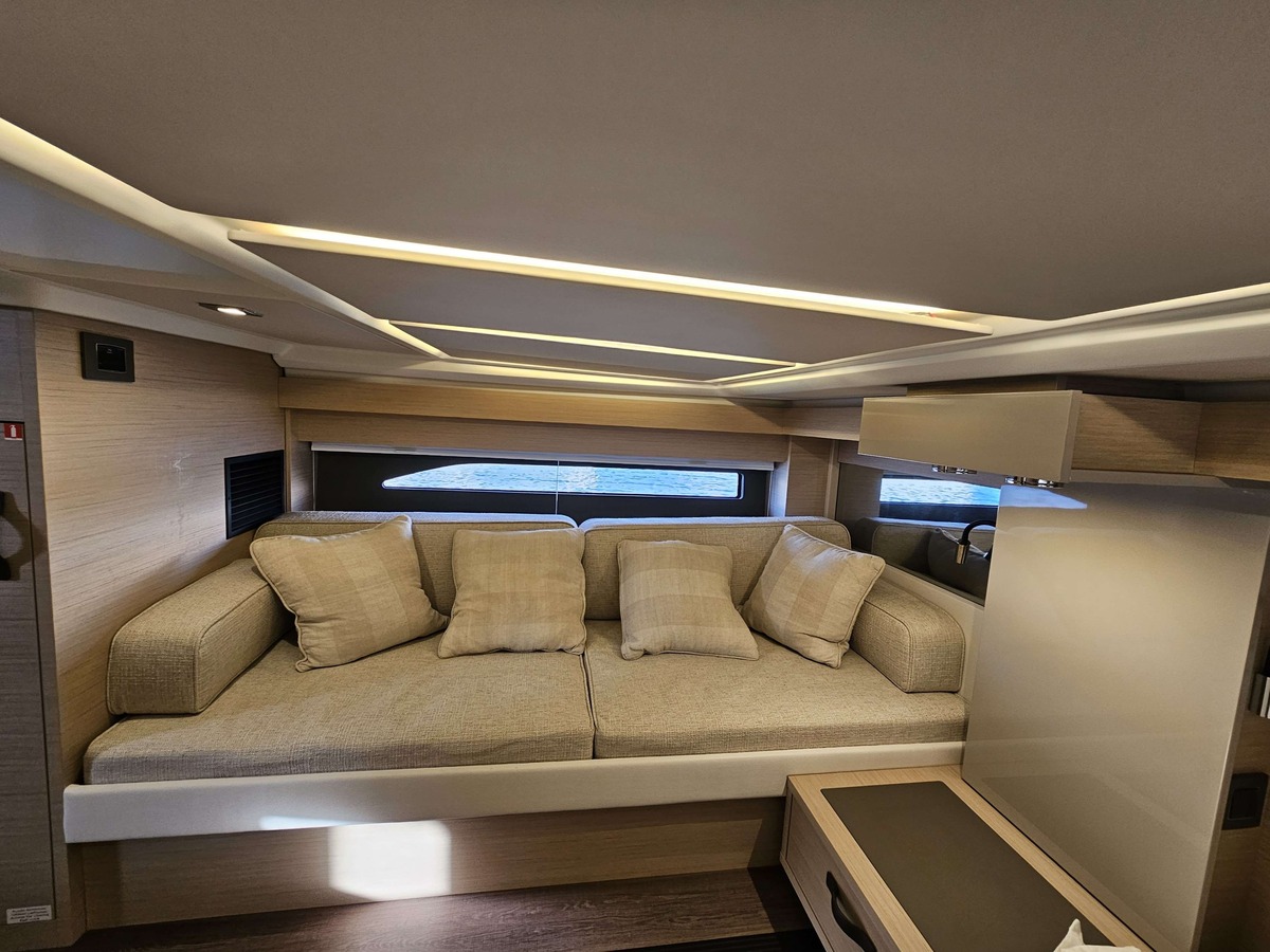 Pensé comme un véritable day boat premium, le DB 43 séduit par son design moderne, ses lignes élégantes et son agencement particulièrement réussi. Le cockpit spacieux, les bains de soleil généreux et la circulation fluide à bord offrent un confort de navigation exceptionnel, aussi bien pour une utilisation privée que pour une exploitation professionnelle en charter à la journée. À l’intérieur, les volumes sont harmonieux, les finitions soignées et l’ambiance résolument haut de gamme, fidèle au savoir-faire Jeanneau.
