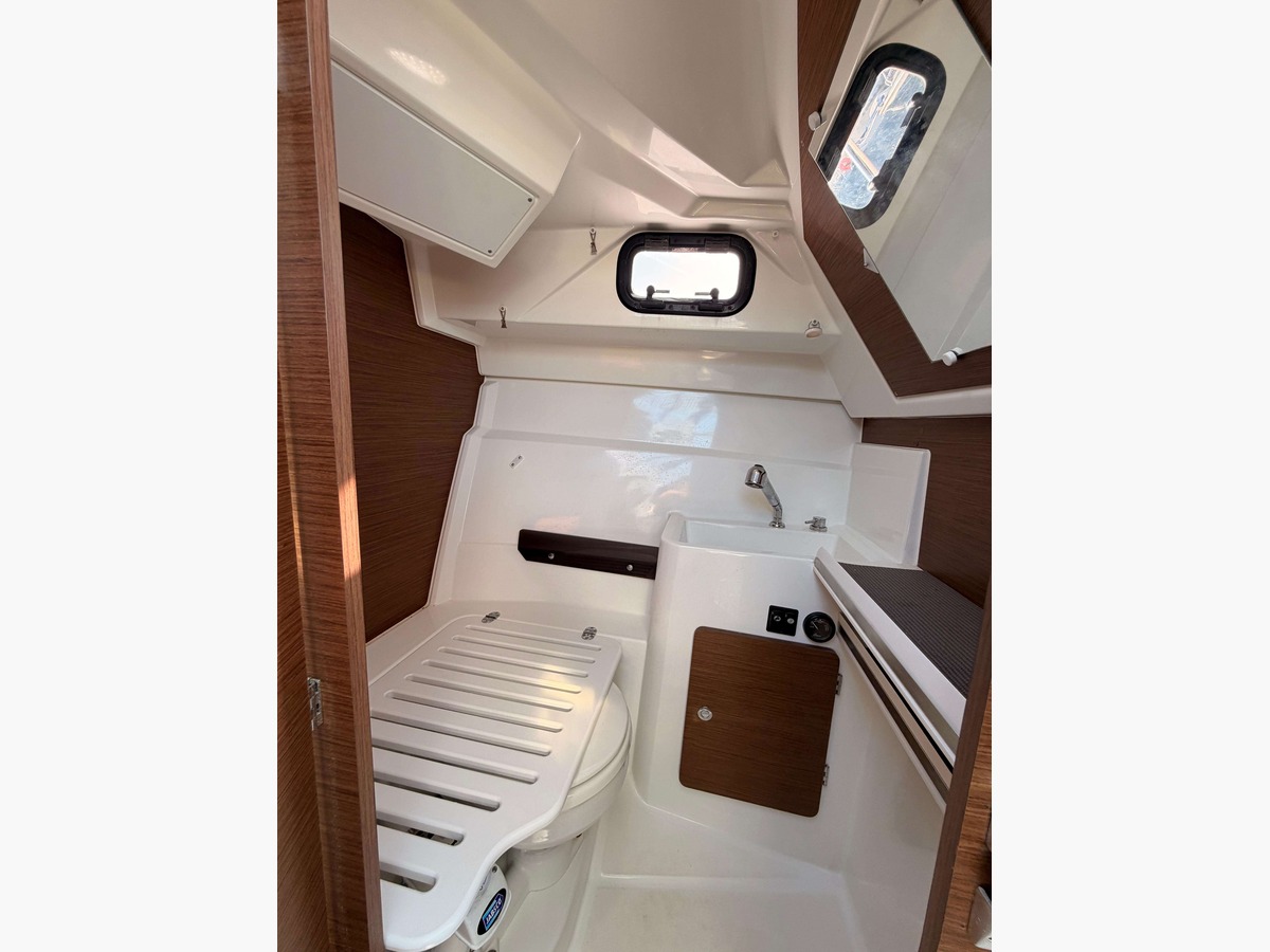 Très bien équipée : panneau solaire, convertisseur, galerie pour paddle sur le toit, casquette de soleil avec fermeture complète type camping, propulseur d’étrave, prise de quai 220V avec chargeur, guindeau électrique, GPS sondeur GARMIN avec cartographie, douche avec chauffe eau, WC marin avec réservoir eaux noires, cuisine luxe avec réchaud gaz et réfrigérateur 40L , complément de couchage dans le carré, prises 12V et 220V, table extérieure, plateformes de bain et circulation sécurisée.