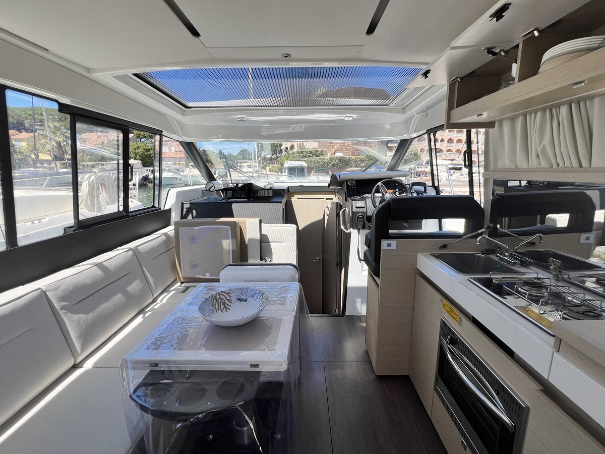 Une superbe vedette contemporaine, idéale pour naviguer en toutes saisons. Son grand toit ouvrant et sa baie vitrée arrière s’effacent pour offrir une ouverture totale et un lien direct avec la mer, transformant l’espace de vie en un vaste lounge intérieur/extérieur. La circulation à bord est fluide et pensée pour partager chaque instant en famille ou entre amis.