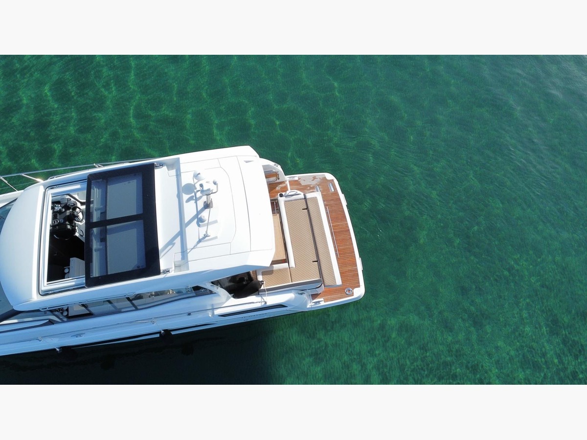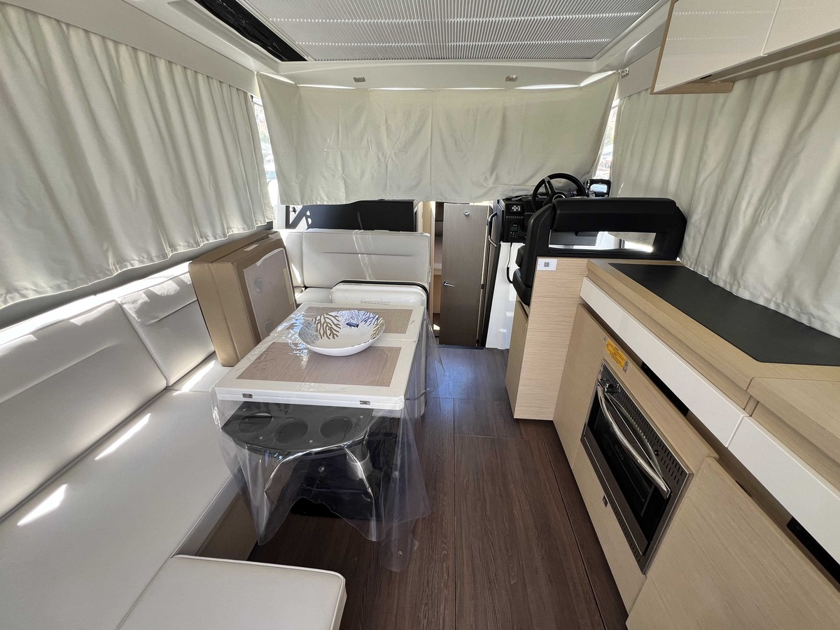 Une superbe vedette contemporaine, idéale pour naviguer en toutes saisons. Son grand toit ouvrant et sa baie vitrée arrière s’effacent pour offrir une ouverture totale et un lien direct avec la mer, transformant l’espace de vie en un vaste lounge intérieur/extérieur. La circulation à bord est fluide et pensée pour partager chaque instant en famille ou entre amis.