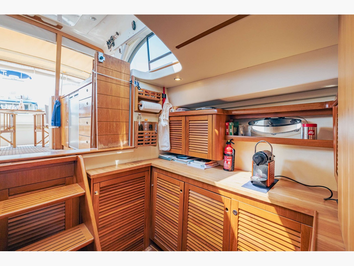 Renowned for its exceptional livability thanks to its immense, level-deck cockpit, ideal for outdoor living, with easy access to the large swim platform.