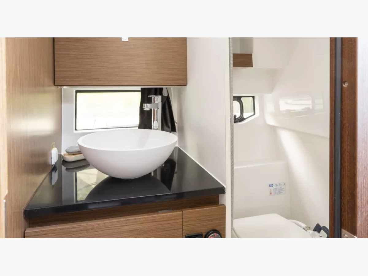 This Flyer 9 is a great opportunity on the recent used-boat market. Well-equipped (Zipwake, bow thruster, T-Top), it offers a perfect balance between a day-boat and compact cruising, with 4 berths.