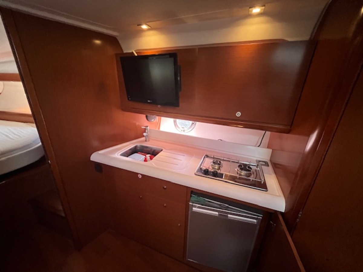 Fully equipped galley: 2 refrigerators, cooker, and gas stove.