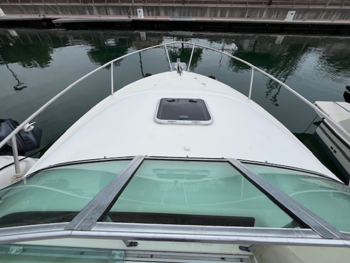 Comprehensive equipment, including bimini top, swim ladder, deck shower, electric windlass, and navigation electronics.