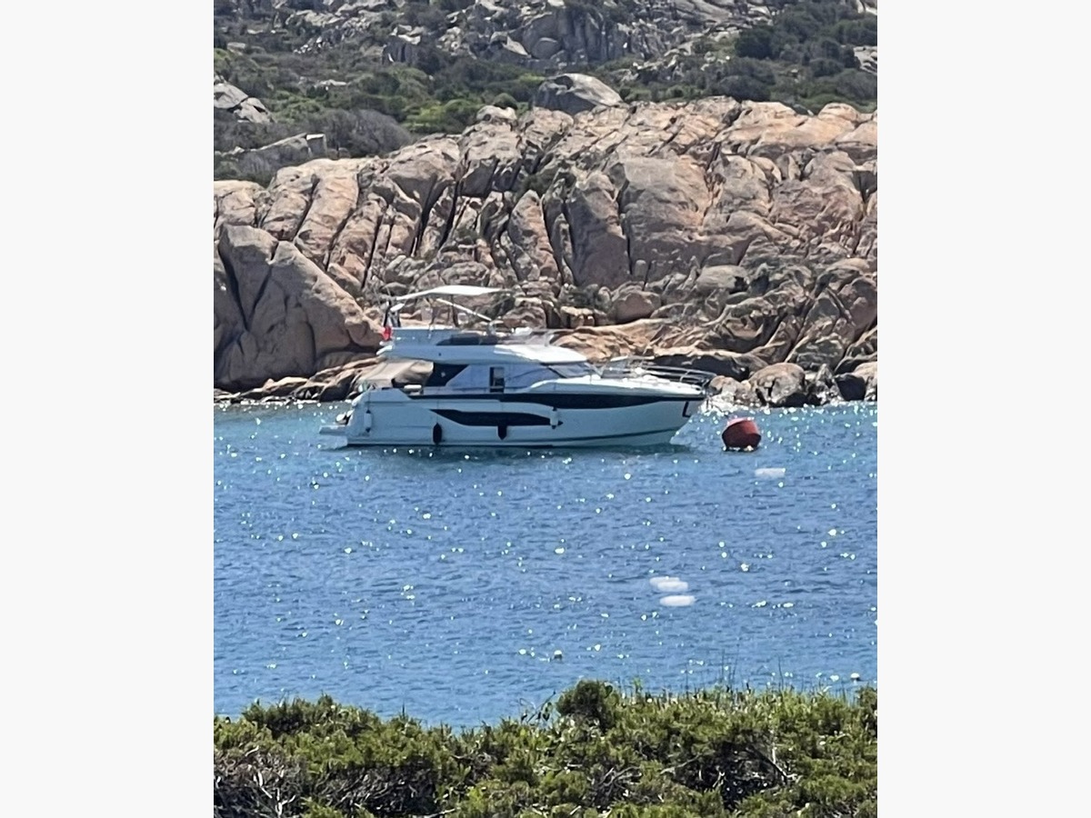First owner, powered by Volvo IPS 650 with joystick control and only 100 engine hours, this F4.9 combines controlled performance with outstanding cruising comfort. The specification is complete and high-end: air conditioning, generator, hydraulic bathing platform and passerelle, flybridge bimini, flybridge galley, and protection for the forward sunpad. On board, the Bowers & Wilkins sound system creates an elegant and immersive atmosphere. A true pleasure to enjoy, whether at anchor or underway.