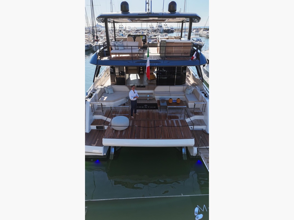 Nous vous invitons à découvrir ce Prestige M7 disponible à bord ou en visite live vidéo. Nous pouvons également organiser une présentation privée en concession, des essais en mer ou une rencontre lors de nos événements.